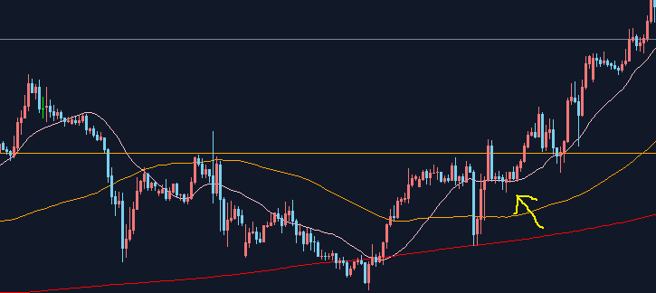 MAクロス直前だが、きちんと高値切り下げてきた場面。