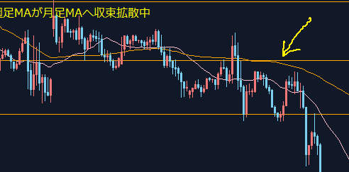 日足が高値を切り下げて日足MA水平気味 (またはその逆)