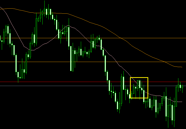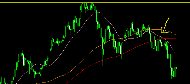 こういう場面は、MAクロスする直前でも売りを考えていい。日足MA勢いなくして水平気味というのは必須。